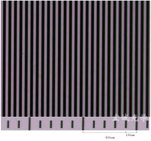 (b)顯微圖片,光柵周期5μm,周期均勻性實驗控制精度優于0.03nm。