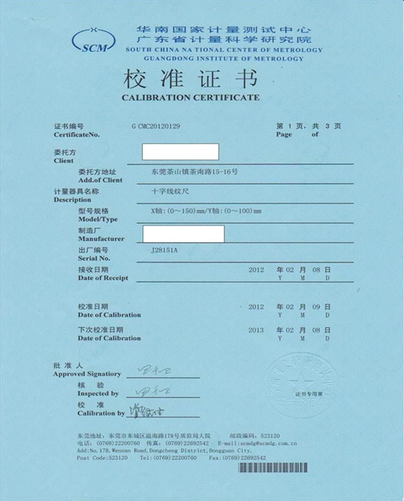 十字線紋尺華南計量院報告
