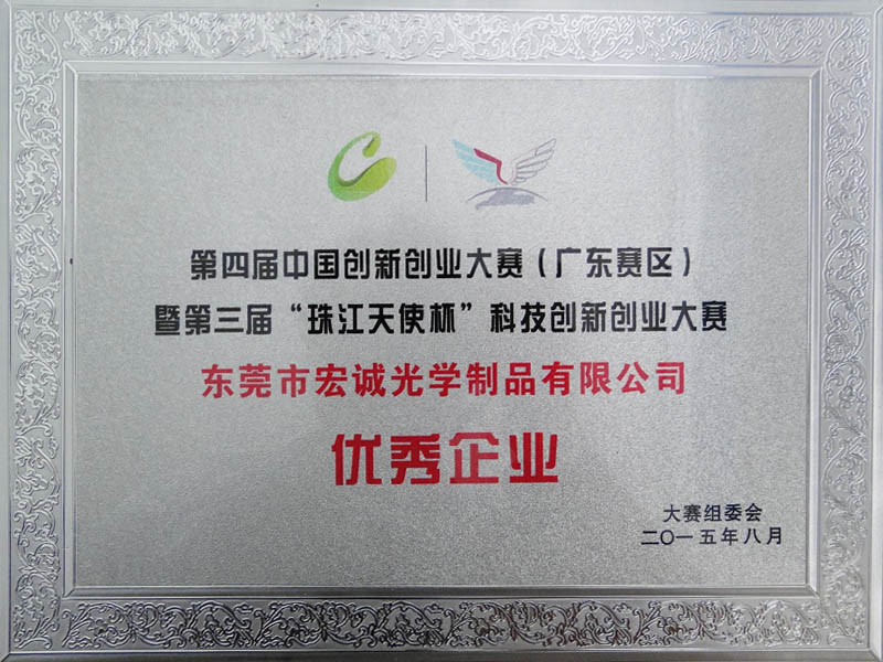 宏誠(chéng)光學(xué)在第四界中國(guó)創(chuàng)新創(chuàng)業(yè)大賽中獲得“優(yōu)秀企業(yè)”稱(chēng)號(hào)