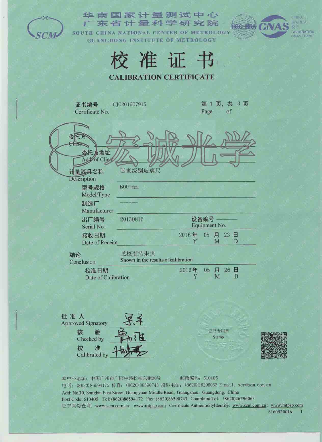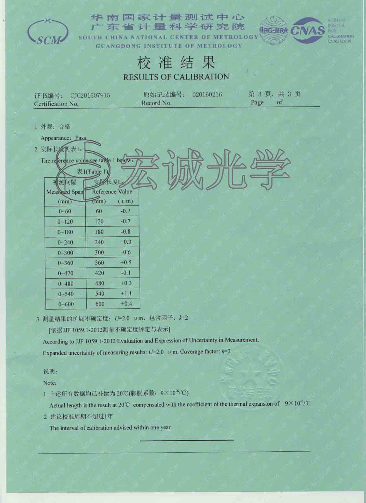 深圳計(jì)量院600mm線紋尺報(bào)告